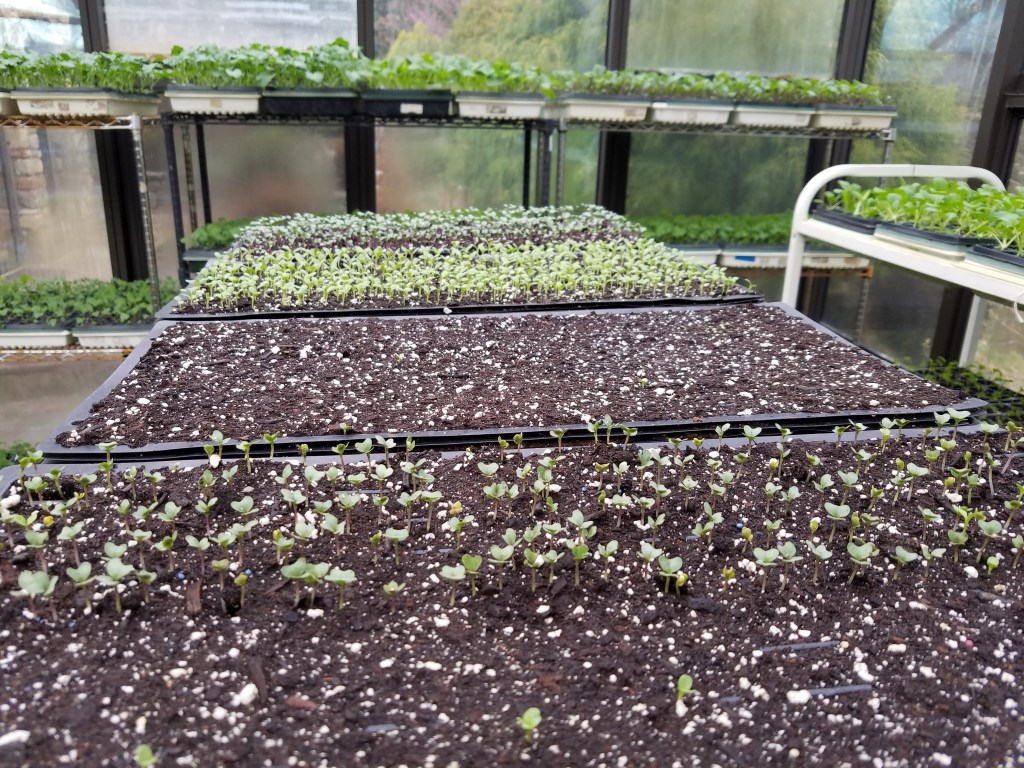 We still have numerous seedbeds and transplants in a variety of stages as the greenhouse work continues step by step. The last seeds to be started will be squash, melons, tomatoes, eggplant, and peppers.