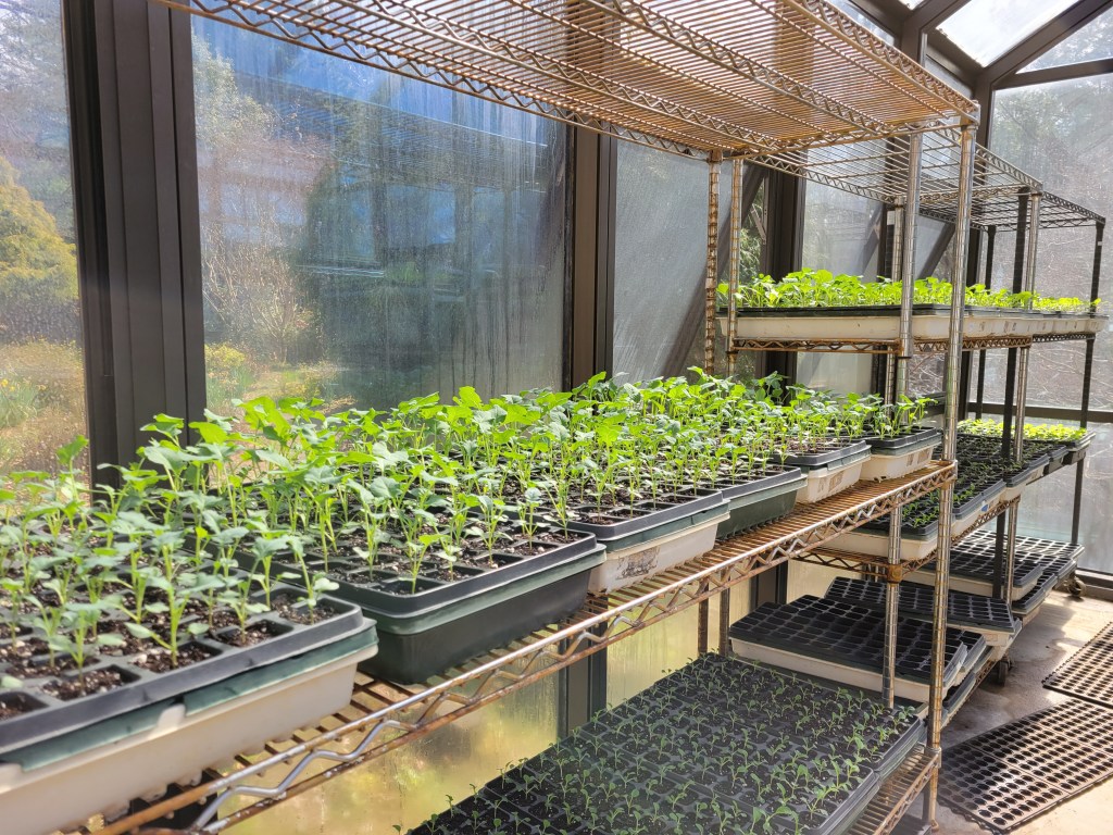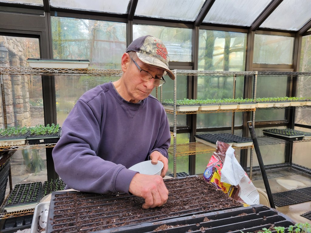 The plants in the greenhouse are growing in leaps and bounds. Robert keeps starting new seed beds and I do my best to keep up with transplanting the seedlings. This stage reminds me having baby chicks to watch over . . . windows open, heater off, mist, then mist again, then windows shut, heater on, and mist again! It is important to start the gardens with strong plants. And we do have some beautiful plants which is one of the first steps in growing vegetables to fill up our CSA Boxes!