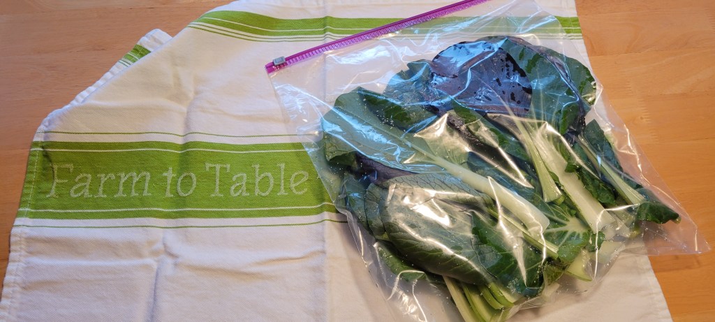 Most all crops will be rinsed one time before leaving the farm, but I recommend two to three more washing to remove all of our Fairview soil. I like to wash them all at once and store greens in a two-gallon Hefty Bag. Pour out as much of the remaining water as possible and gently squeeze most of the air from the bag without damaging the tender leaves. Then at mealtime all one needs to do is pull out some greens and a chef’s knife to prepare salads! The leaves are hearty, so I do not recommend tearing as it will bruise them. We usually add a drizzle of honey or something sweet like dried cranberries to our salads. Asian greens fall into the bitters category when it comes to vegetables. There will be lettuces, but we start with hearty, nutritional greens.