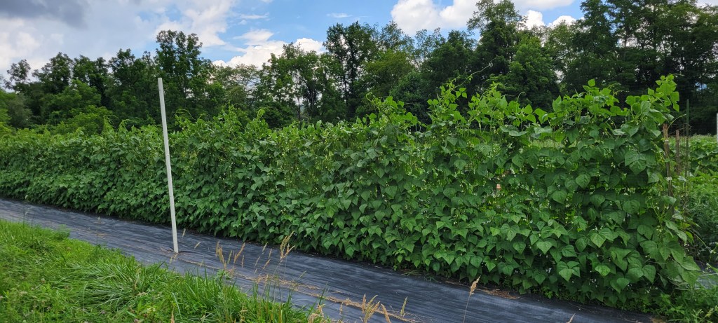 There will be green beans in the future. Our plants were looking great the day I snapped this photo. Expect a mix of the last of the broccoli and cauliflower and kohlrabi plus cabbage, carrots, cucumbers, summer squash, zucchini, and patty pan squash. Enjoy the bounty of the mid-summer garden harvest. And please pray for some sunshine!!!
