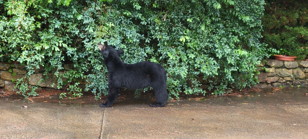The bigger bears are not as dainty when they are eating in the field. They are doing extensive damage pulling down and breaking blueberry plant branches in an attempt to get the fruits! I suppose as more of their habitat is taken over by humans, we can expect more of this bad behavior. When houses are built in what was once their mountainside “oak acorn grove,” they must find food in more open spaces. Any CSA Member who wants to try to find some berries should send me an email and we will agree upon a time.