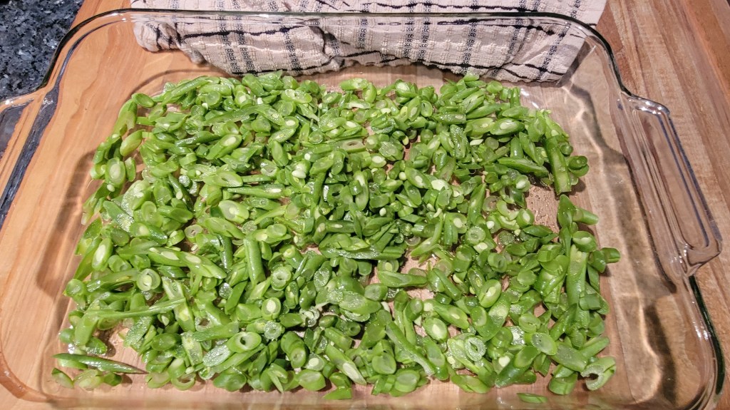 If you are looking for a different way to prepare green beans (or peppers, for that matter), consider running them through the food processor, mixing in some EVOO, and then roasting the beans in a 375 degree oven for about 15+ minutes. I particularly like this method for larger beans or any I plan to freeze.