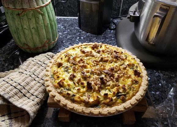 Quiche is versatile with or without meat; but vegetables are always a required ingredient at our house! Quiche is easy to make and freeze in a bag. To prepare, simply thaw slightly and pour into a pie shell or bake in a dish “custard style” in a pan of water. This makes for a quick meal when I am busy transplanting tiny seedlings in the greenhouse!