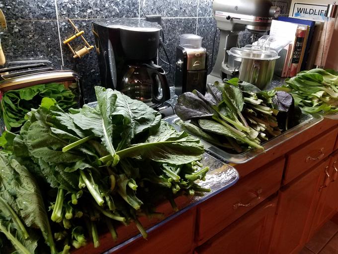 Christmas of 2017 I got a fancy new blender which opened up a new culinary window for me. In January 2018 I was purchasing “fresh” greens at a local market because I wanted to play with my new toy which my grandson calls “Grandma’s Robot.” I was not particularly pleased with the flavor; thus, the Spring of 2018 was the first time I experimented with freezing greens from our garden specifically for use in smoothies. Now I am hooked–but this is a healthy addiction!