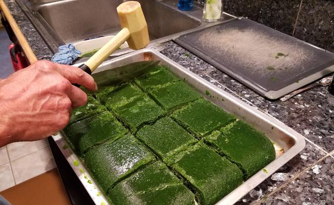 A glass baking dish also works, but then one must cut the finished frozen product into cubes or bars. I have found wrapping individual frozen cubes or bars in BPA free baggies makes it easier to extract the needed amount when making an individual smoothie.