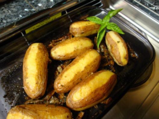 Toss the slightly cooled, boiled potatoes in virgin olive oil to coat. I recommend doing the smashing of oiled potatoes in a clean kitchen sink! With the palm of your hand slowly, but firmly press down. Don’t break it up too much–just until the outside of the potato skin splits slightly open. pray Pam in the bottom of a 9 x 13 baking dish. Place the potatoes in the dish. Drizzle with more olive oil if too much oil gets rubbed off. Season potatoes with salt, garlic powder, and freshly ground pepper to taste. Bake at 450 degrees for 30-45 minutes or until golden brown. Remove from the oven and sprinkle with some cheddar cheese. Use as an appetizer or a side dish.