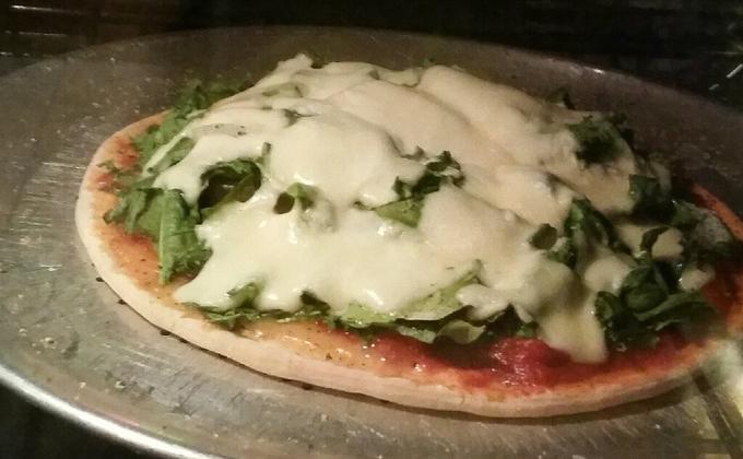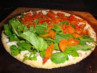 The photo on the left pizza stone is before baking. The right photo is the final product! This is the only way I can get Robert to eat arugula!