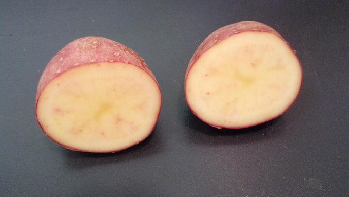 Fingerlings and red potatoes may have somewhat pinkish flesh inside. These varieties are not commonly found in grocery stores precisely because most people like to see a “white flesh” only potato. There is nothing wrong with them and this hue largely disappears as they are cooked—much as purple asparagus, red cabbage and kale lose their vibrant colors when cooked.