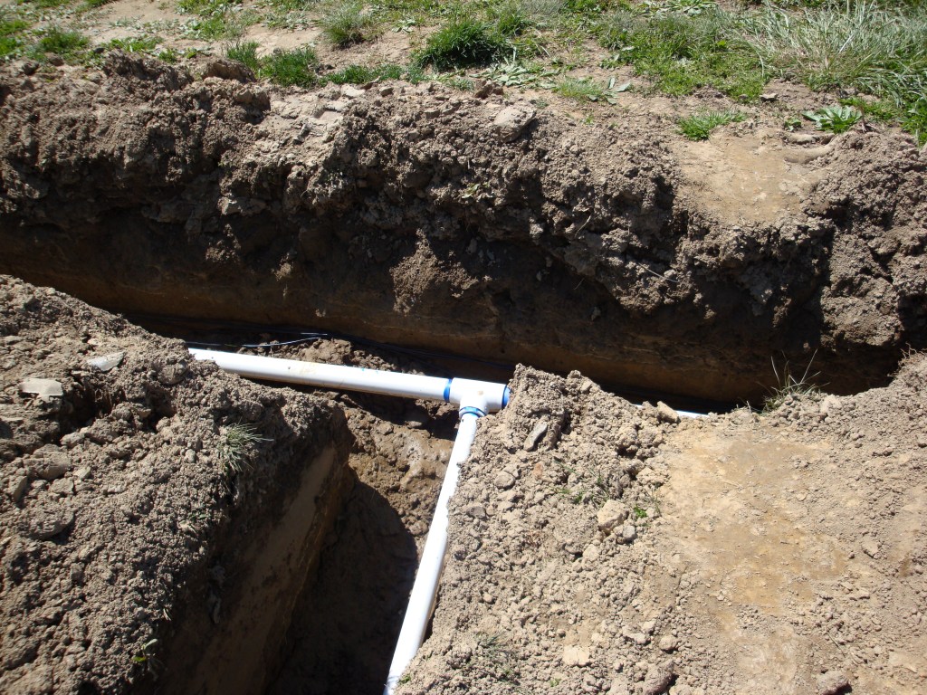 Trenches carrying the water and electric lines to the gardens must be dug. These tasks are best performed with a backhoe. Underground “T’s” direct the lines to the various field gardens. Hose bibs (or water faucets) are installed at various intervals as needed.
