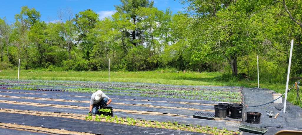 At the same time, the garden soil must be turned and fluffed. This step is done with our tractors. The remainder of the season is all really hard, manual labor. The ground covers between which we plant must be laid down. The drip irrigation lines must be laid as well. Only then can we begin putting our plants into the gardens. Robert is busy today preparing the gardens for the first joi choi, tatsoi, kale, lettuce, romaine, broccoli, cauliflower, kohlrabi, and cabbage transplants. We trust each plant will mature into a lovely, tasty vegetable to fill our early CSA Boxes.