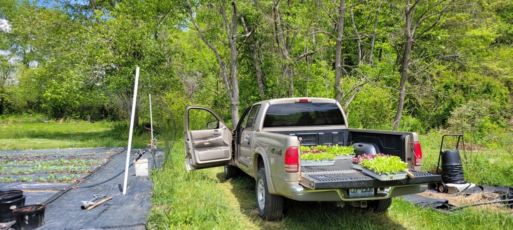 Typically on hears the phrase “the days are long, but the years are short” in regard to child rearing; however, it also applies to CSA farming. The greenhouse seedbed and transplanting stage is nearing an end as all of the spring crops are growing nicely and filling their individual peat pots. The nightshade veggies are the last to fill the seedbeds. Today those seeds are starting to break though the soil which means by the end of the week, I shall be transplanting the tomatoes, eggplant, and peppers into their individual peat pots. And then, except for monitoring and watering the plants located there, my daily greenhouse hours will have ended!